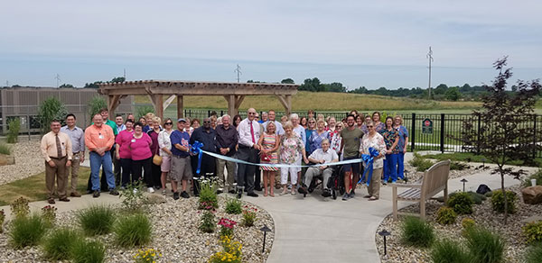 Pinckneyville Community Hospital partnered with the Pinckneyville Chamber of Commerce to hold an open house and ribbon-cutting for Stella's Serenity Garden, in memory of Stella M. Baker, by Dr. Allen Y. Baker. The Bakers' daughter, Debbie Baker-Arett, was present at the ribbon-cutting on behalf of the family.