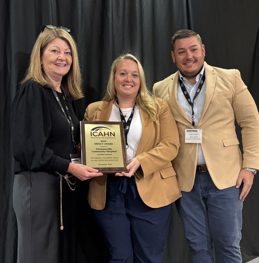The Illinois Critical Access Hospital Network (ICAHN) announced Pinckneyville Community Hospital as a 2025 IMPACT Award Winner for the hospital’s CareFirst Journey during the organization’s Annual Conference held November 3 - 4 at the I-Hotel and Conference Center, Champaign.